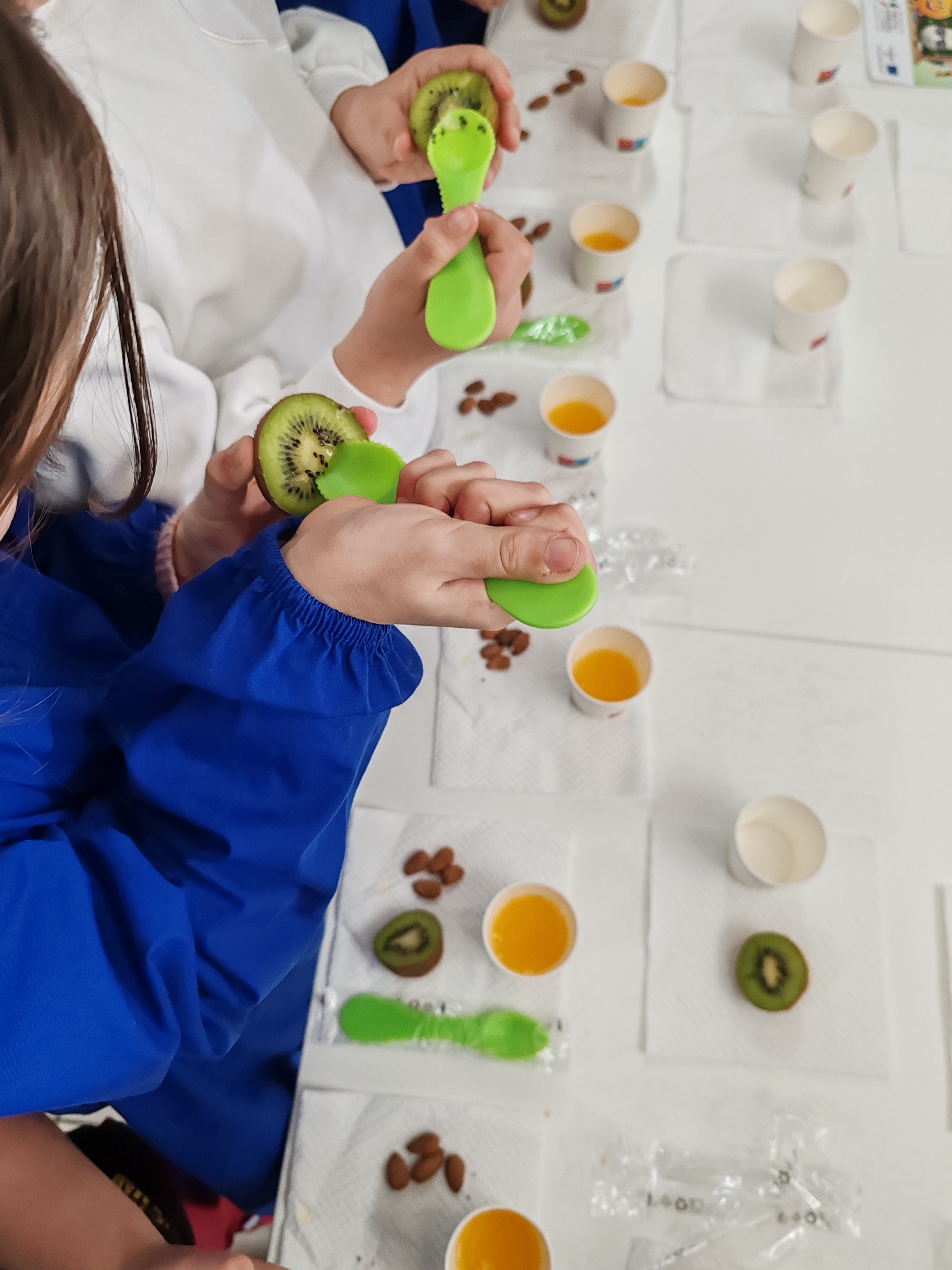 I bambini del plesso hanno potuto assaporare la spremuta di arance biologiche accompagnate da kiwi e mandorle